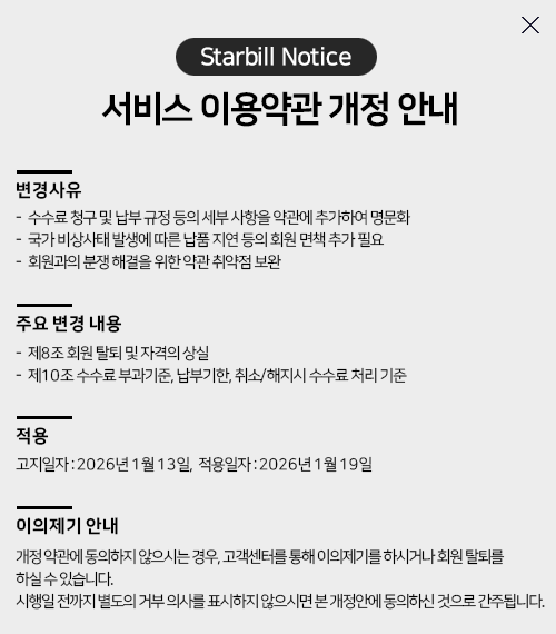 | ■ | 서비스 이용약관 개정 안내 | 2026-01-13 |